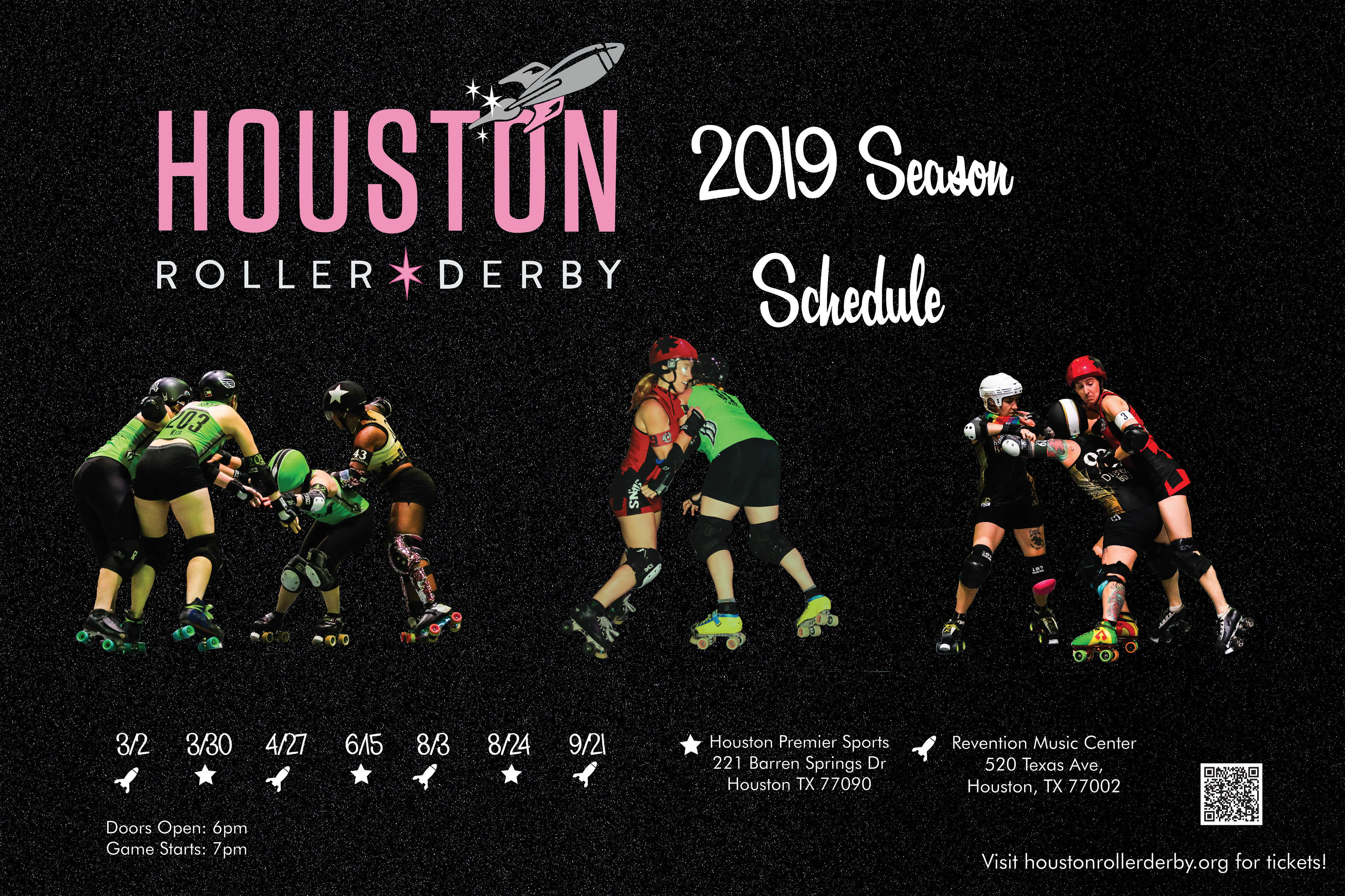 As part of their 2019 season, Houston Roller Derby needed promotional material for a series of games and outside events, to increase attendance and get more fans involved in the excitement of the sport.